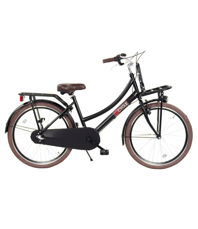 Koop deze mooiste transportfiets van Nederland met 24 inch wielen met 3 versnellingen (Shimano-Nexus) online in onze webshop. De transportfiets is uitgevoerd in het mat-zwart en heeft bruine accenten. De fiets is geschikt voor meisjes van 8 tot 10 jaar. Deze transportfiets is o.a. afgewerkt met aluminium velgen en een breed stuur voor comfortabel fietsen. Door de dikke banden heeft de fiets een goede grip op het wegdek ook op onverharde wegen. De fiets is gemaakt van sterke materialen en heeft een solide frame waardoor de fiets wel tegen een stootje kan. Deze fiets is uitgevoerd met een voor + achterdrager. Een echte Transportfiets dus!